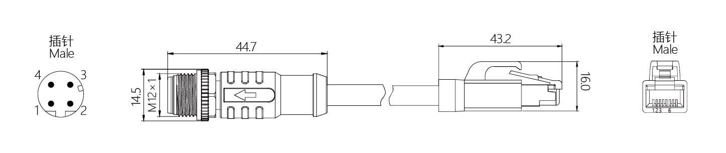 規格描述:M12-RJ45,直型針-RJ45,D-Code